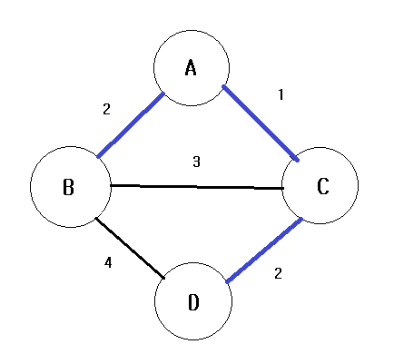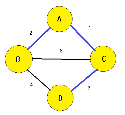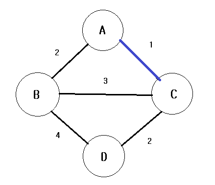 그 다음 가중치가 가장 작은 A-C 간선을 선택한다.