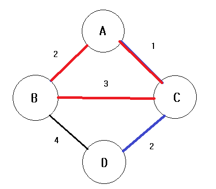 그 다음 작은 가중치를 갖는 A-B와 C-D 을 선택한다.