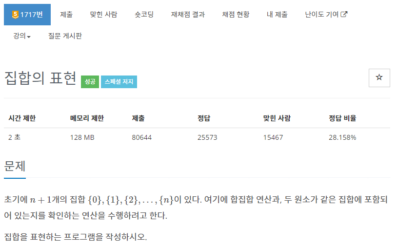1717번: 집합의 표현