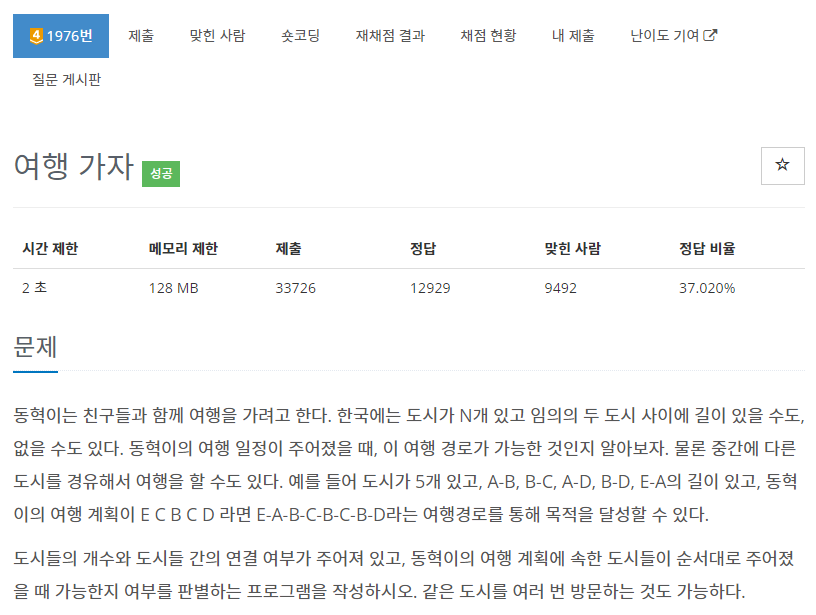 // 첫 번째 도시를 기준으로 여행 계획에 속한 도시들의 연결 여부를 확인한다.