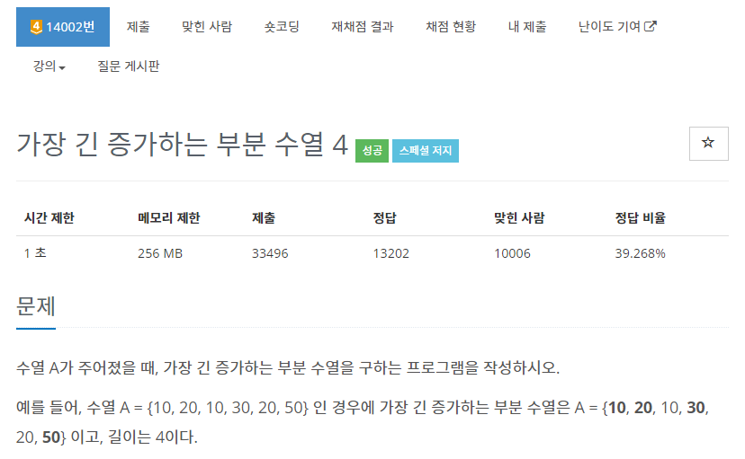 14002번: 가장 긴 증가하는 부분 수열 4