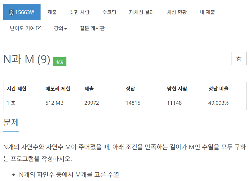15663번: N과 M (9)